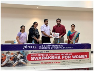 - The Gender Sensitization Cell of AB Shetty Memorial Institute of Dental Sciences, Nitte (Deemed to be University) organized a ‘Self-Defence Training Programme – Swaraksha For Women’ for students of Nitte DU on 15th November 2024 and was conducted by Martial artist Mr. Karthik S. Kateel and his associate, Mrs. Shobhalatha from the ‘Swaraksha for Women Trust’