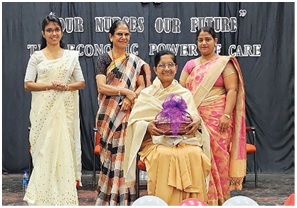 2. The International Nurses Day celebration at NUINS was organized by the Student Nurses Association (SNA) Student Council on 11th May 2024, under the global theme “Our Nurses, Our Future: The Economic Power of Care.”And Sr. Aileen Mathias, former Vice Principal of Athena College of Nursing and recipient of the Florence Nightingale Award, was the Chief Guest and was felicitated for her contributions to nursing.