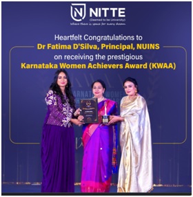 KWAA Award received by Dr Fatima D’Silva, Principal, NUINS