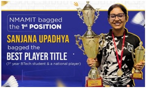- Sanjana Upadhya, 1st year B Tech student & a national player, NMAMIT bagged the first position and the best player title at Nitte University Intercollegiate Shuttle Badminton Match held at Deralakatte, Mangalore.