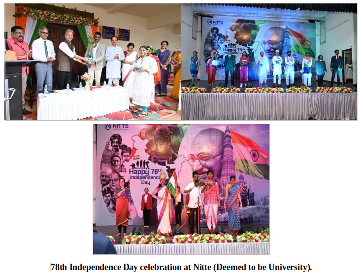 Nitte Group of Institutions celebrated the 78th Independence Day on August 15, 2024, at Nitte Rukmini Adyanthaya Memorial Polytechnic College, with Prof. Dr. Gururaj Kidiyoor unfurling the National Flag. The event saw participation from NCC cadets, Scout-guides, staff, and students, fostering national pride and unity. Simultaneously, NUCSER hosted a patriotic performance at K S Hegde Auditorium depicting the historic Attingal Revolt, highlighting India’s struggle against colonial oppression. The celebrations reinforced values of unity, resilience, and civic responsibility, strengthening institutional commitment to fostering an informed and engaged citizenry.
