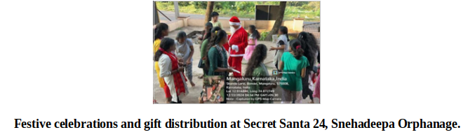 Spreading Joy and Compassion: Secret Santa 24 Celebration at Snehadeepa Orphanage