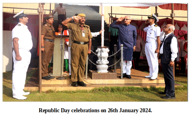 Republic Day celebrations were jointly organized by the Nitte Group of Educational Institutions on 26th January 2024 at the BC Alva Sports Complex, Nitte. The event featured a ceremonial parade by the NCC units and campus security personnel, instilling patriotic spirit among the participants and attendees.