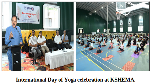 Nitte DU, in collaboration with KSHEMA’s Medical Education Unit, celebrated the International Day of Yoga on 21st June 2024 at BC Alva Indoor Stadium. Around 180 participants engaged in yogasanas, pranayama, and meditation sessions. Yoga achievers from Nitte University’s constituent colleges were felicitated in recognition of their dedication. The event promoted physical and mental well-being, fostering a healthy and peaceful community, while reinforcing the institution’s commitment to holistic development and wellness.