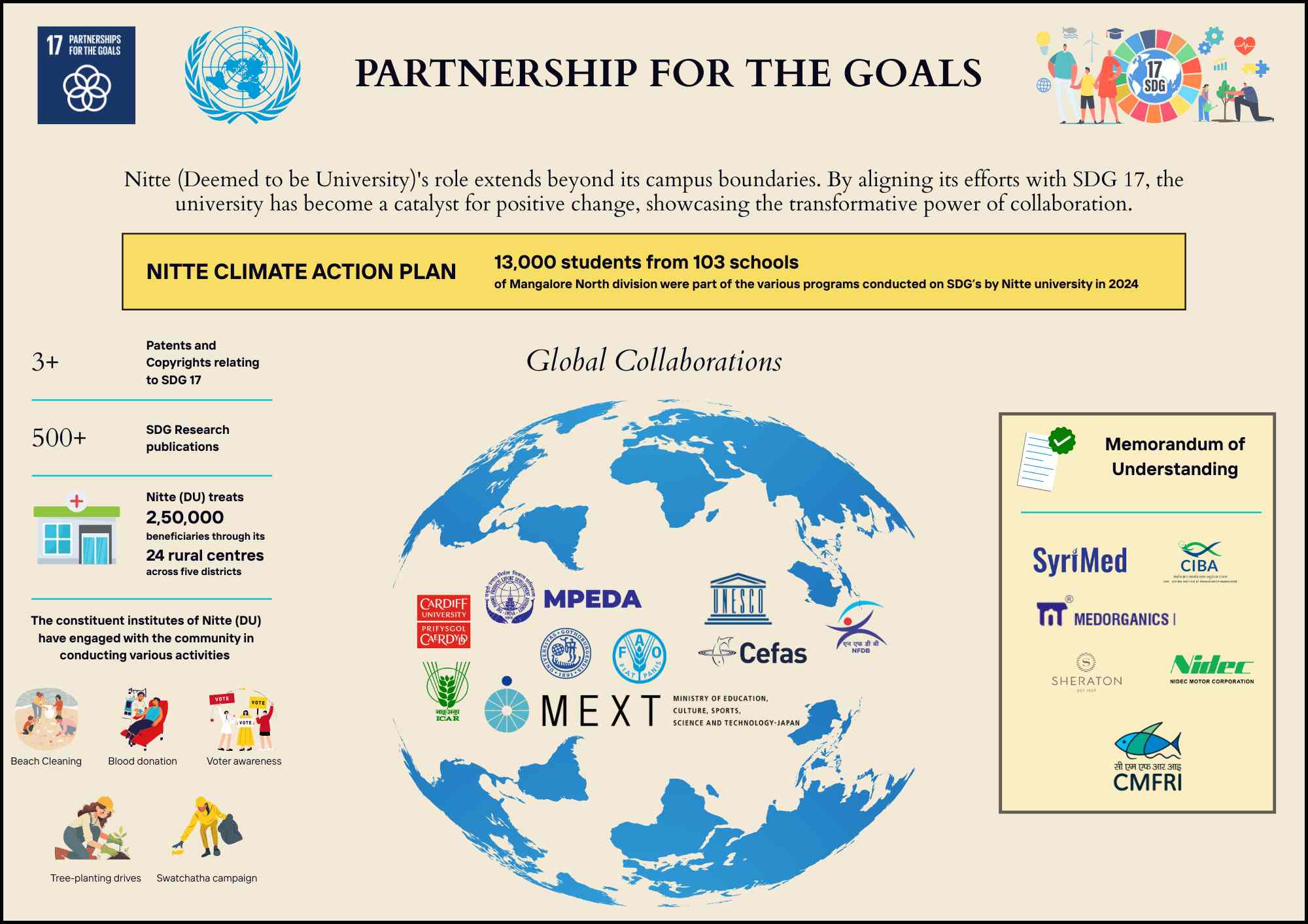 Nitte (Deemed to be University)'s role extends beyond its campus boundaries. By aligning its efforts with SDG 17, the university becomes a catalyst for positive change, showcasing the transformative power of collaboration.