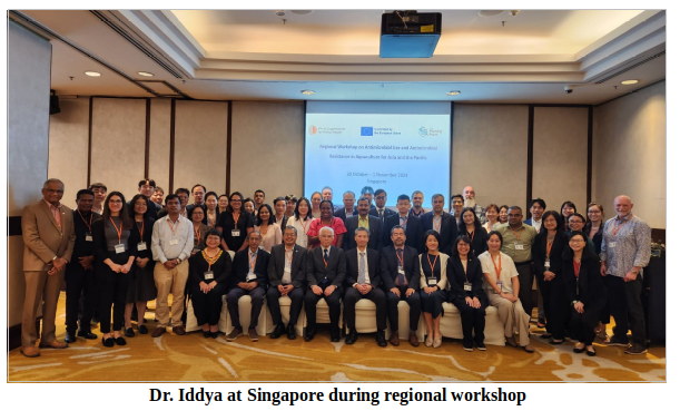 Dr. Iddya Karunasagar delivered talks on “E-learning Module on Stewardship on AMR in Aquatic Animals,” “AMU/AMR in the Shrimp Industry,” and “Alternatives to the Use of Antibiotics in Asian Aquaculture” during the Regional Workshop on AMU/AMR in Aquaculture for Asia and the Pacific, held in Singapore from 30 October to 1 November 2024. The workshop brought together experts and stakeholders to address antimicrobial use, resistance, and sustainable practices in aquaculture.