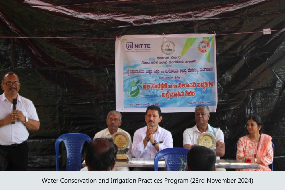 NUCSER, in partnership with the Department of Horticulture, Mangaluru, organized a program on "Water Conservation and Irrigation Practices" at Akshaya Farm, Talapady. The event, attended by 50 farmers, postgraduate students, and faculty, featured resource persons from the Horticulture Department who discussed water conservation techniques, government schemes for irrigation, and sustainable farming practices. This collaboration addressed local water scarcity issues, supporting SDG 14 (Life Below Water) through policy-aligned initiatives.
